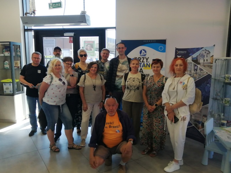Uczestnicy wycieczki w punkcie informacji turystycznej we Włocławku.